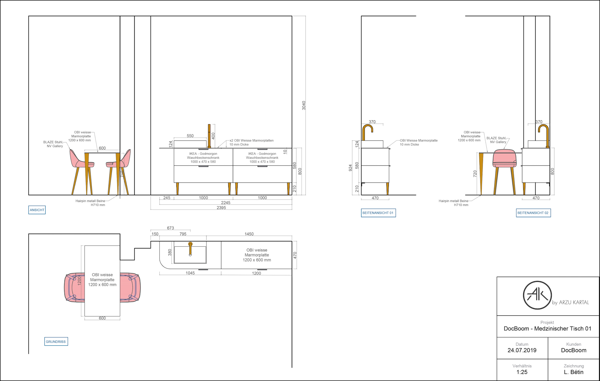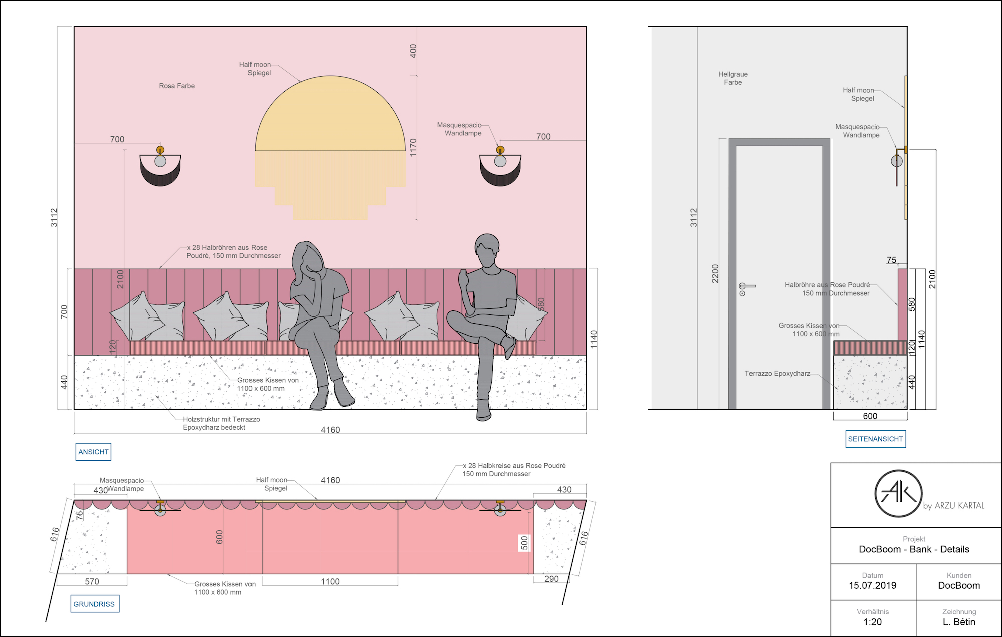 Arzu Kartal has been working as a self-employed interior designer in Hamburg for the past eight years, predominantly designing luxurious spaces by using well-known furniture brands and high-end materials. She specializes in residential and commercial design, but also designs offices. When I worked with Arzu, I managed my own projects, took care of the full design concept and set up new management tools, such as an agenda for the workers, a bill of quantities linked to a design booklet, project details for moodboards and layouts.