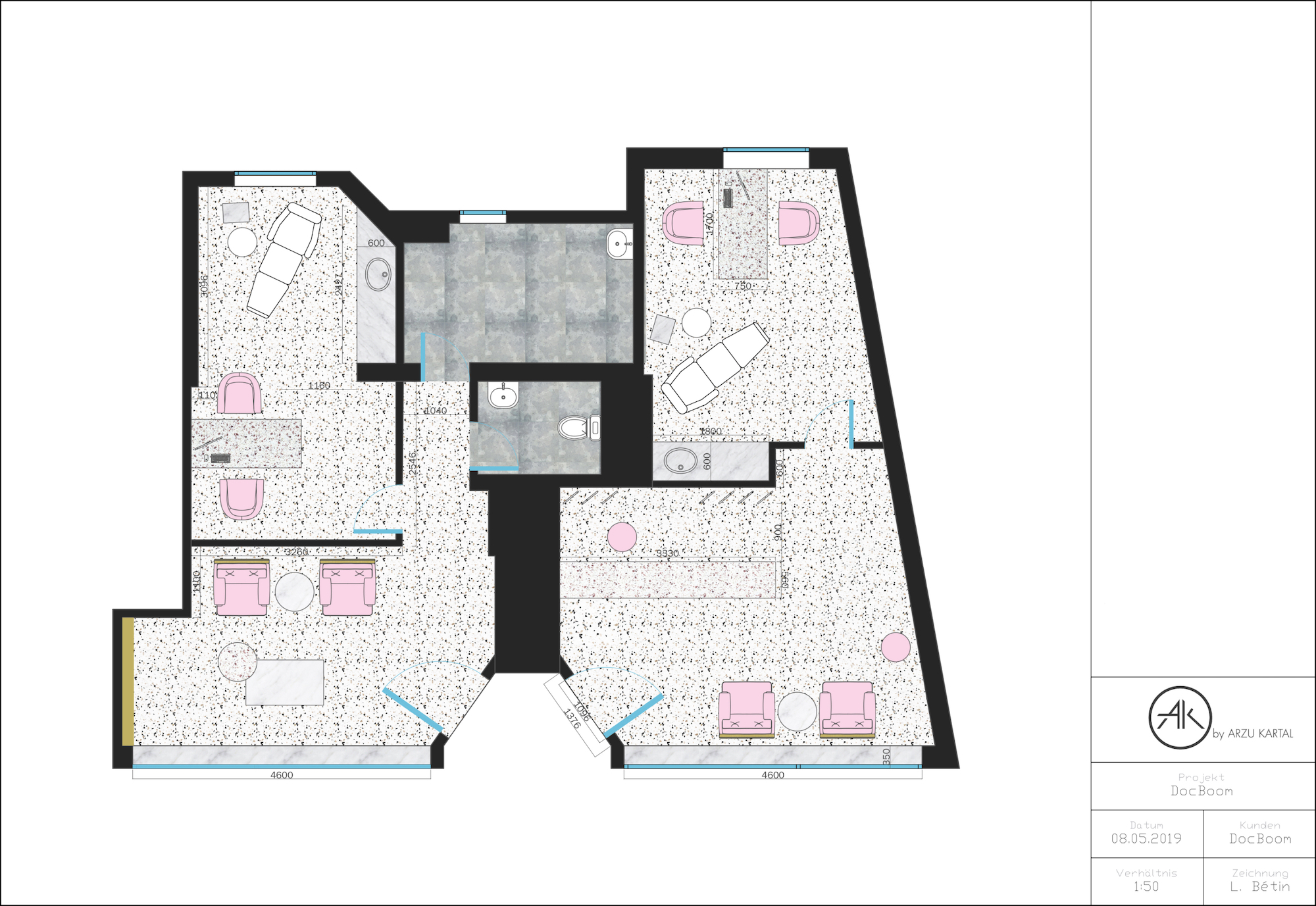 Doc Boom was founded by three partners specialized in plastic surgery and beauty care. They created this company to turn it into a franchise after the completion of the first clinic designed by Arzu Kartal and myself. They have a low budget but wish to create a luxurious atmosphere. During the project I iterated a lot with the clients to ensure we satisfied their requirements.