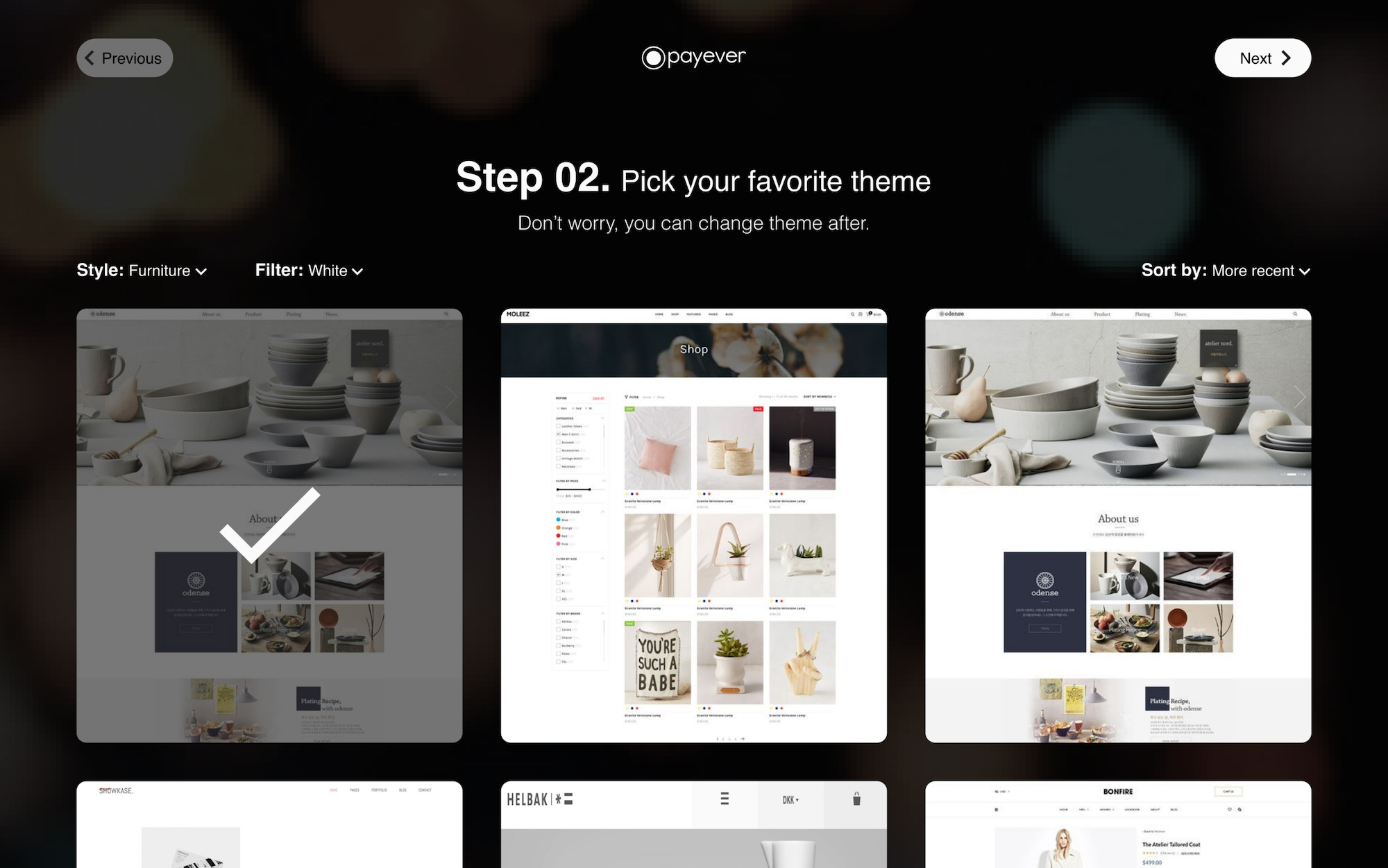 The next step for the business owners is to select their favorite theme. I added a mention saying that they could still change it later so they don’t spend too much time on this page.