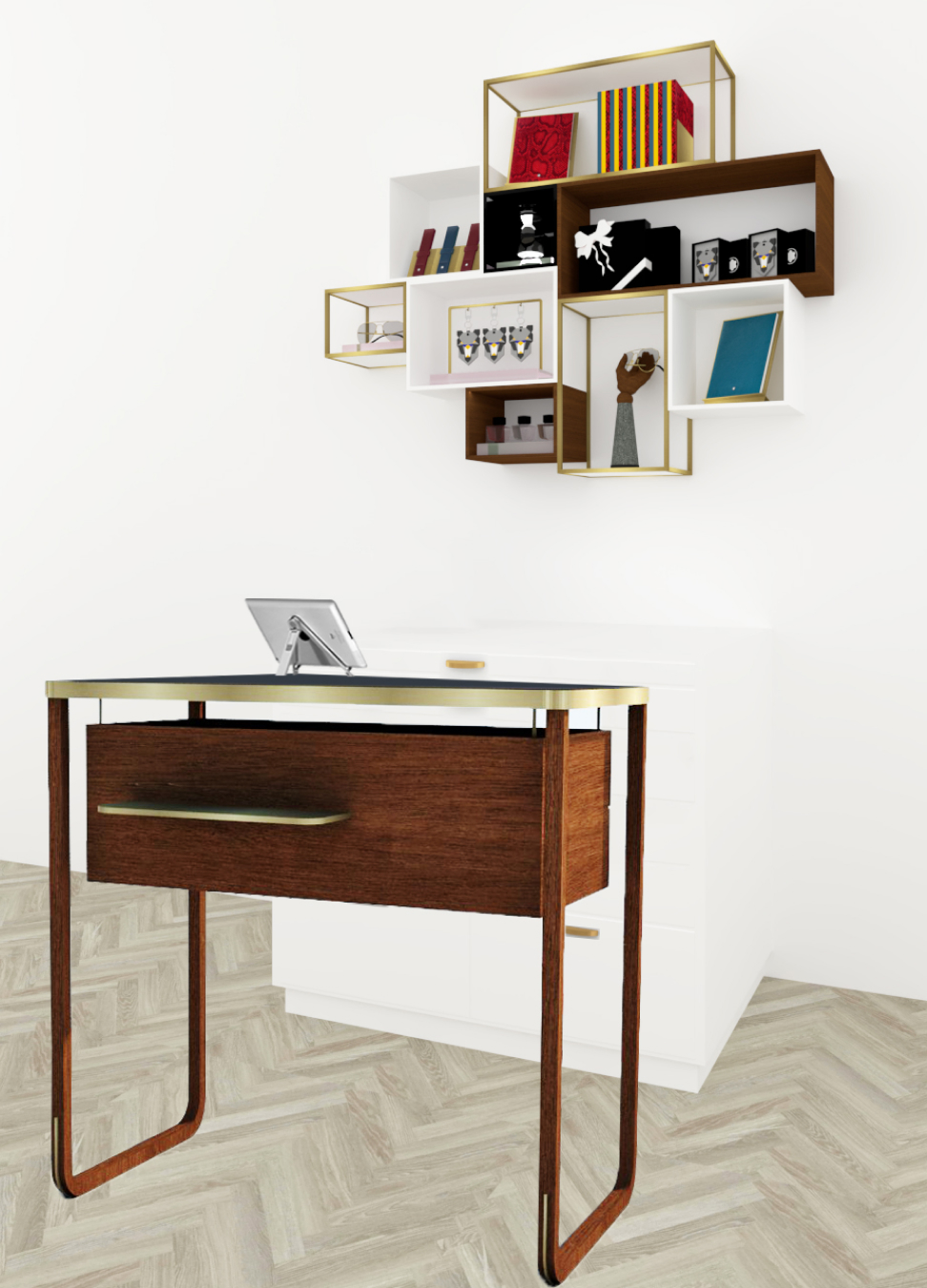 Six years ago, Noé Duchaufour-Lawrance created Neo, a brand new concept for Montblanc boutiques. The concept has evolved ever since and tends to be bright and dynamic. A boutique is composed of wall units and free-standing units, each displaying one type of products. My work was to develop the design of different modules in order to implement them in future boutique openings. I worked with Isabelle Cappuccio, director of Retail Design and Store Planning department.